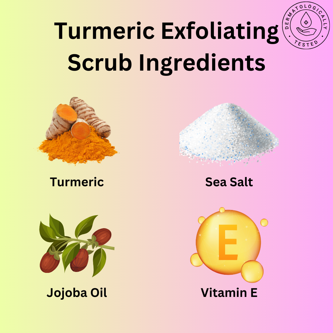 Using Turmeric scrub has a wide range of benefits, including effectively reducing dark spots, improving skin texture, addressing issues like hyperpigmentation on various body parts, relief from issues like eczema and assistance in preventing ingrown hairs.